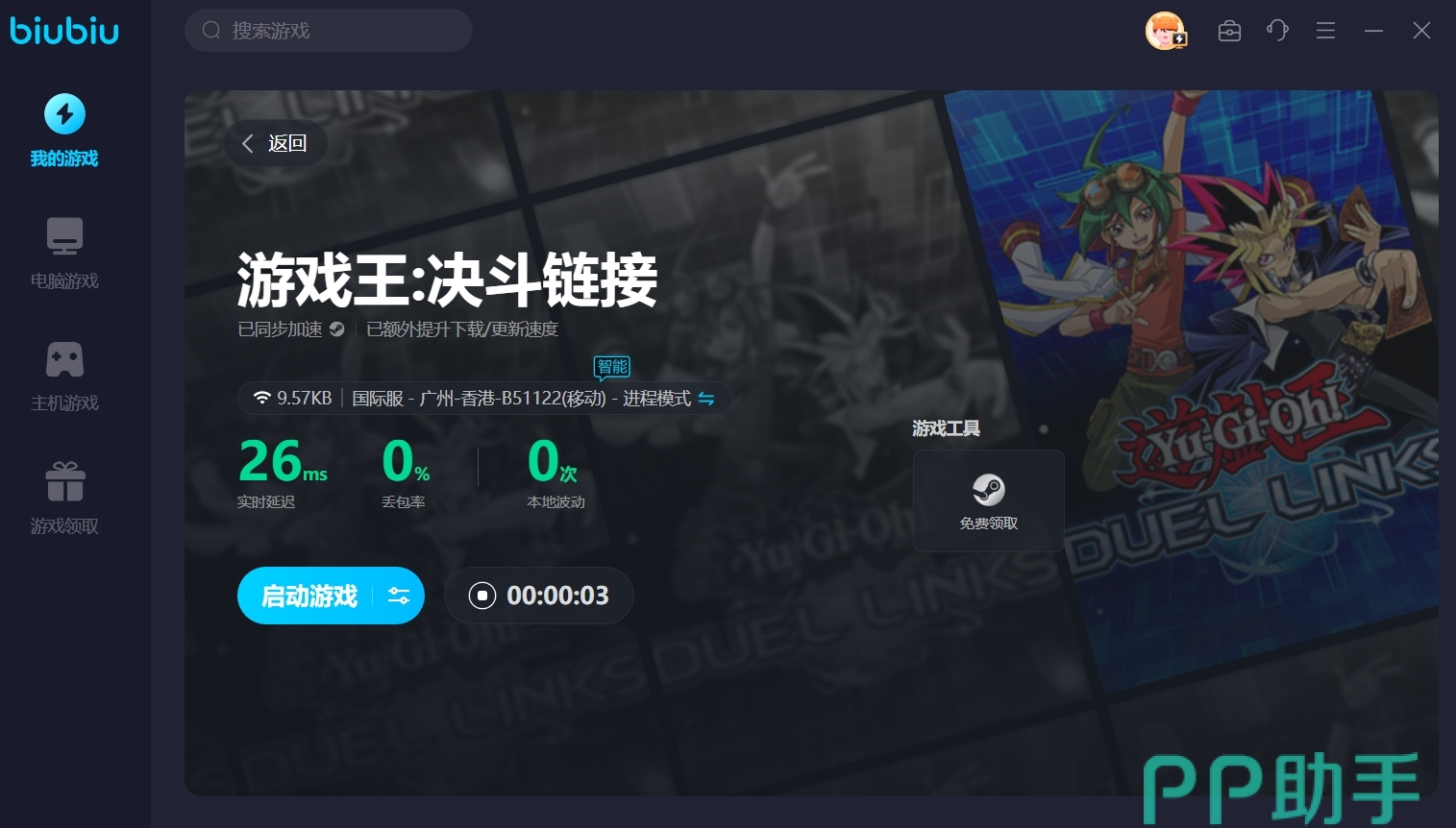 游戏王决斗链接的对局节奏比较快,一般10分钟就能决出胜负,因此在排位上分追求的是尽量多局高效率,而biubiu加速器支持超长时间游戏加速,随开随用,一点即开即停,是你在排位有限时间里追求高效上分游戏的极佳搭档。