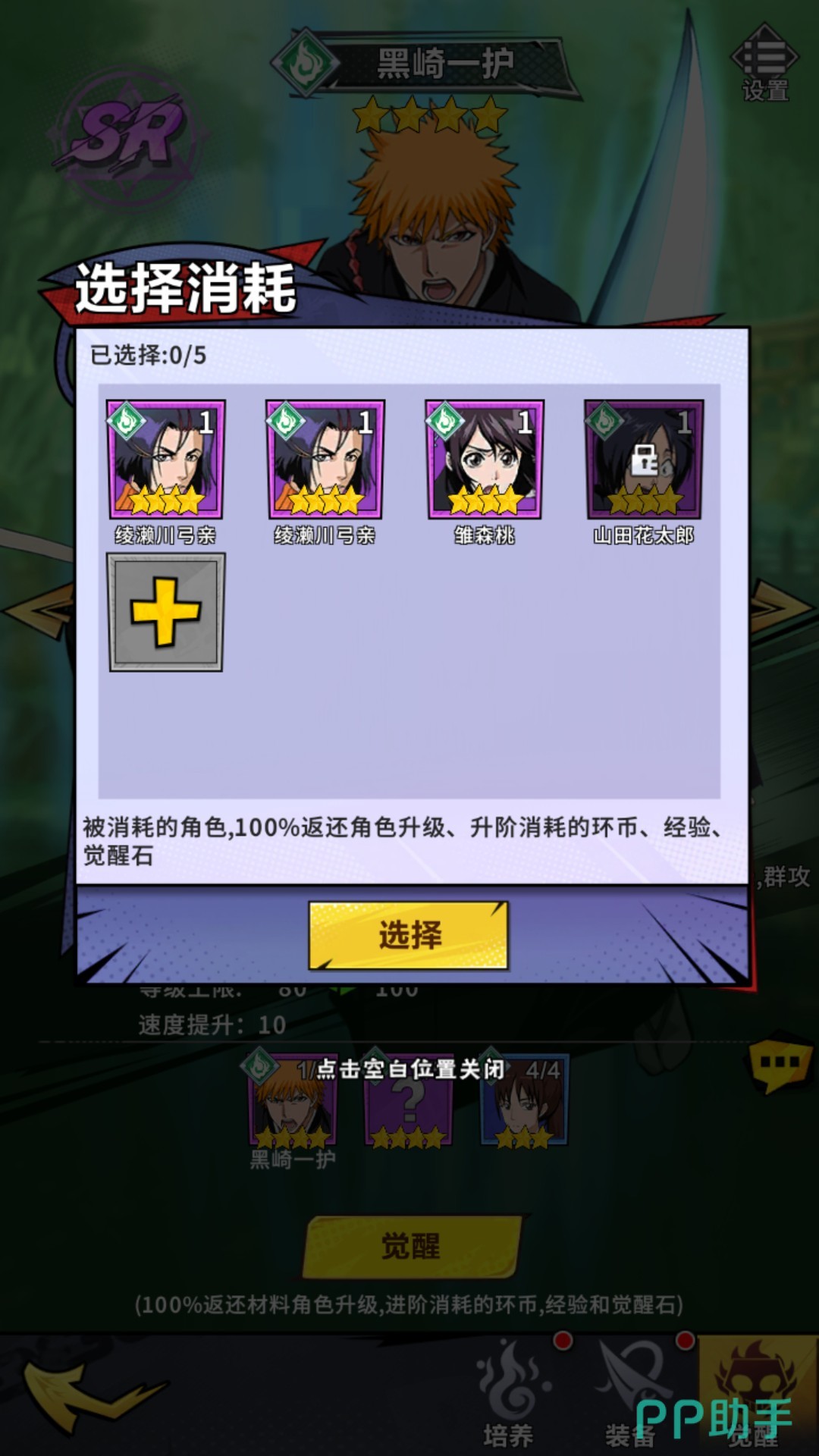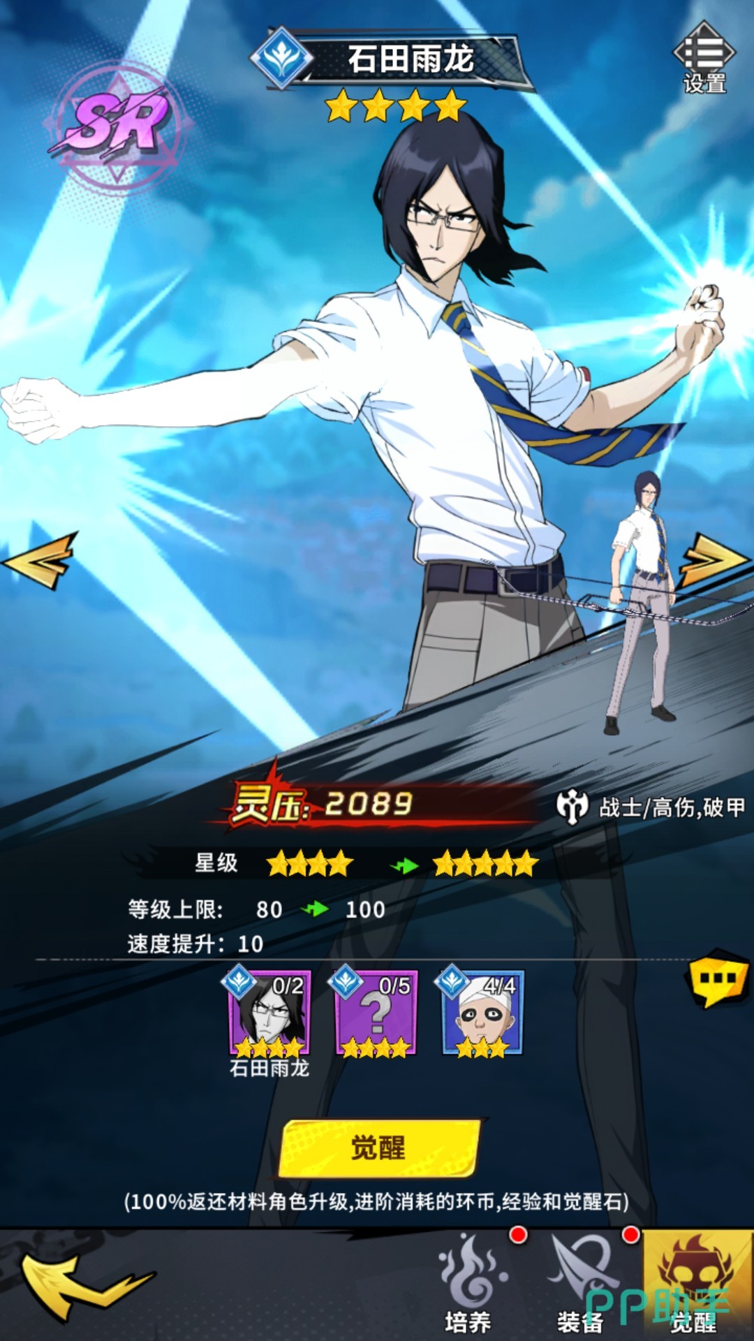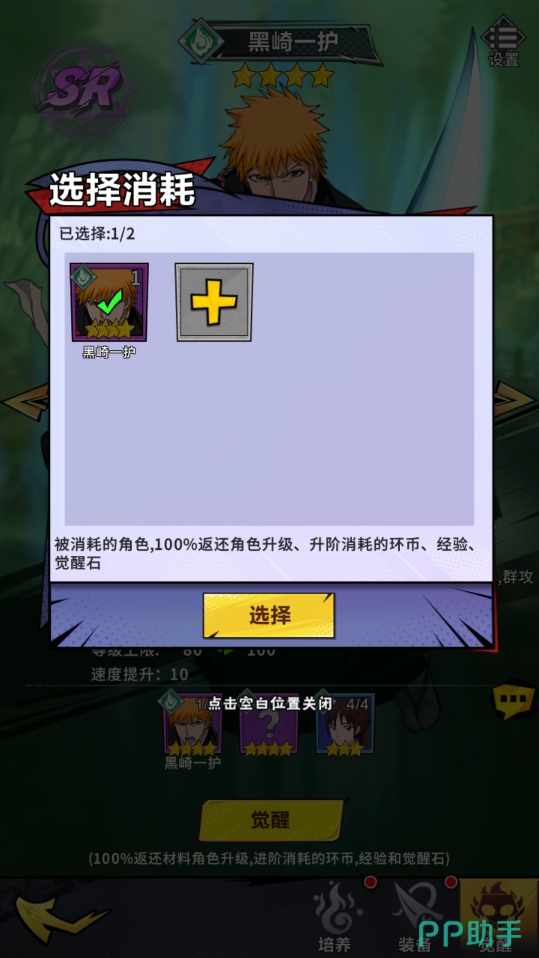 以四星角色为例,在第一次觉醒时,玩家需要消耗两张同样名称的四星角色卡牌,五张同属性的四星角色卡牌,以及四张蓝色同属性的三星角色卡牌。玩家可点击相应的材料框,来进行资源的勾选,确保自己不会将要保留下来的角色卡牌消耗掉。完成觉醒后,角色的星级会上升,同时提高角色本身的属性和灵压,并且角色的等级上限也会得以增加。
