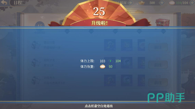 一开始玩家可以通过日程任务以及闯关的方法来升级,玩家在每次提升等级就可以快速的恢复对应数量的体力。在游戏主界面就可以直接点击福利的图标位置是在右上角。