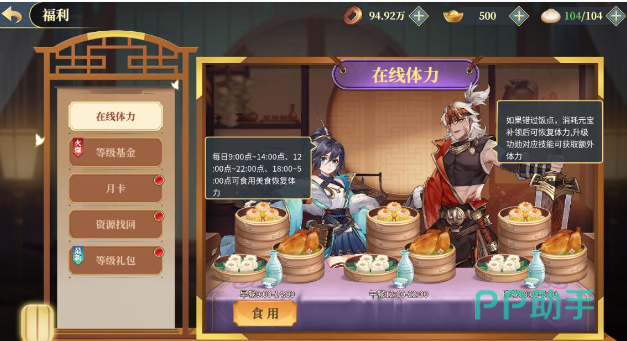 玩家可以迅速进入到在线体力的界面,只要在对应的时间就可以迅速的去领取体力,全部都是免费的体力。除此之外还可以通过购买的方式来获得体力,主要是通过元宝每天都可以购买三次。