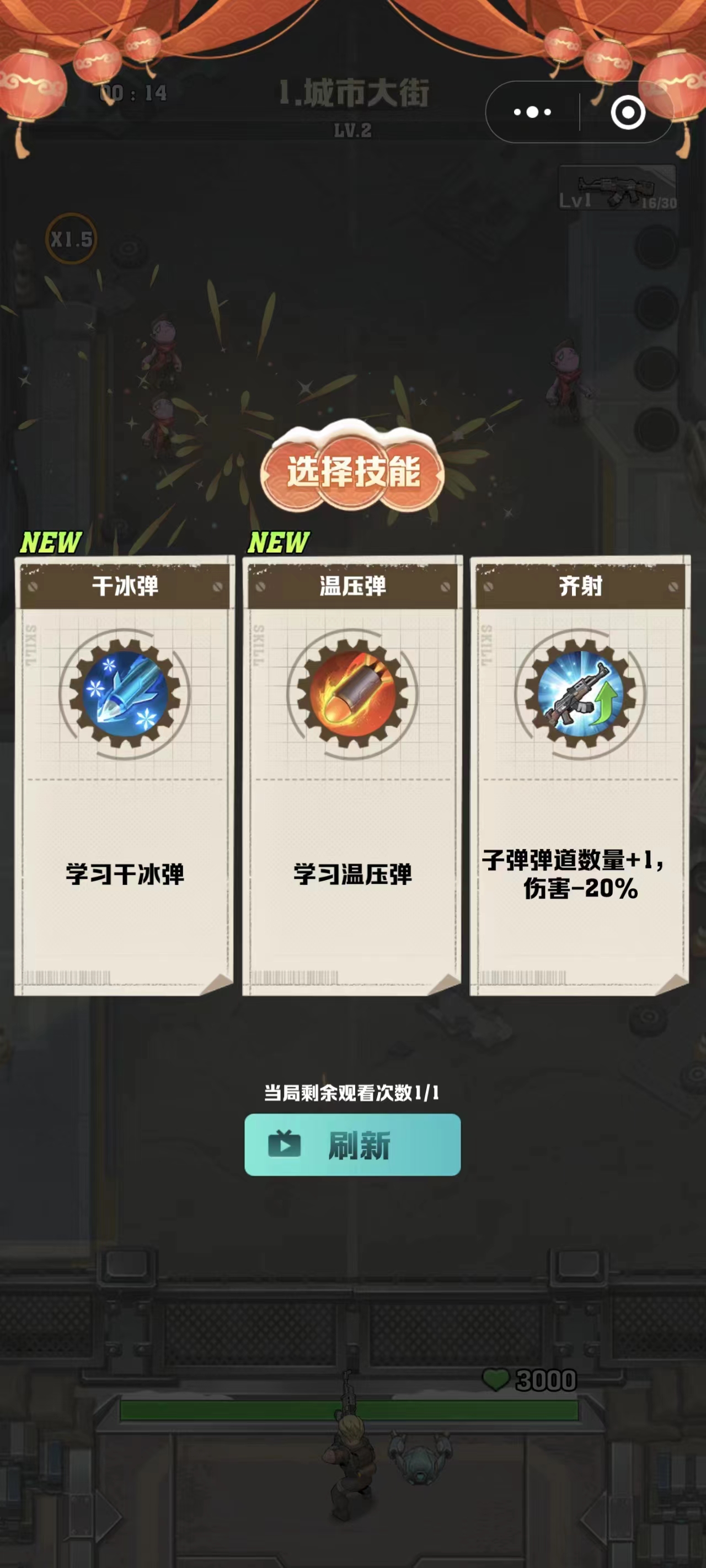 前期的话最推荐大家选择“温压弹+干冰弹+齐射”的组合,首先温压弹它本身带有火属性的伤害,对于大部分普通僵尸都是十分克制的,而且在命中僵尸后他还能产生爆炸,进而伤害证明僵尸附近的目标,所以清小怪时的表现非常不错。