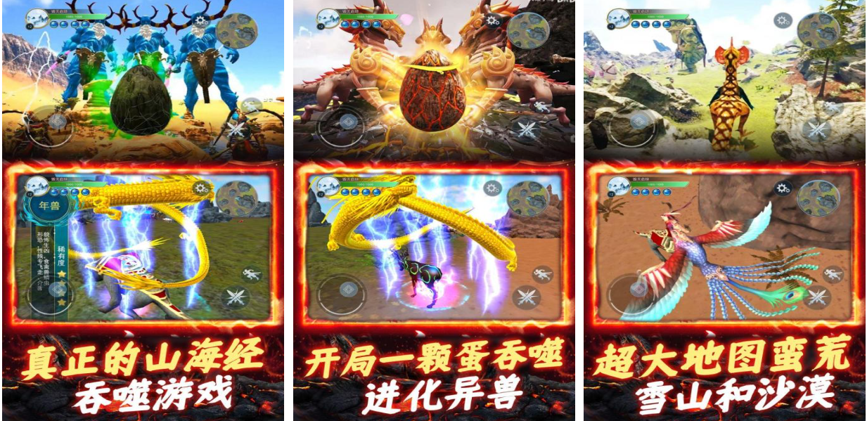 本作是款玩法十分独特的仙侠风格吞噬进化手游,以山海经为蓝本打造的世界观和造型夸张的异兽让人流连忘返,各种奇珍异宝和真实的洪荒时代背景也让玩家大开眼界,独特的吞噬进化玩法与宠物孵化功能增加了可玩性,强大的光影效果和别出心裁的引擎技术也是本作的亮点,山海经系列游戏的粉丝试试这款硬核吞噬手游吧。