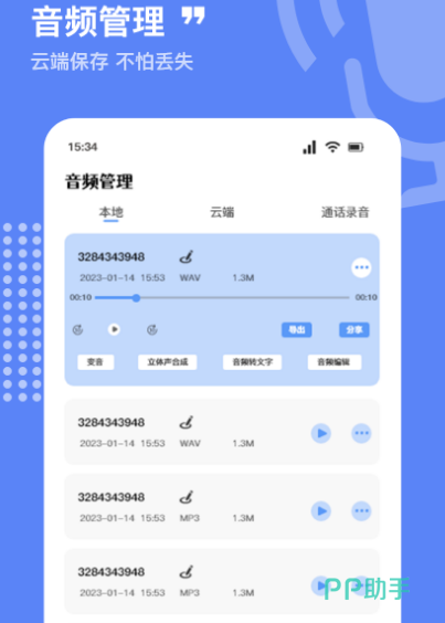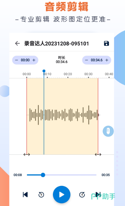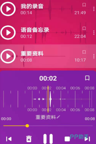 免费高品质高清录制应用,录制mp3音频时,没有任何时间限制,应用程序经过优化,以最快的速度启动,不会错过任何重要声音。