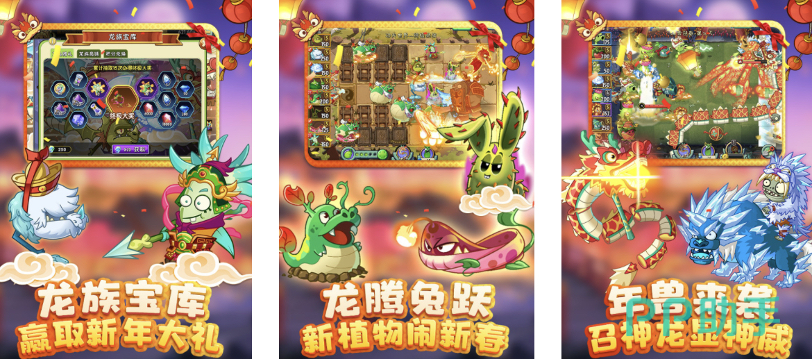 除了将各类植物进行排兵布阵从而预防僵尸的入侵的基本玩法外,游戏还增加了其他有意思的元素,比如说植物能量,这种数据化的显示使得玩家可以提前长场上其他植物进行重新搭配,当然,僵尸地图也有所更新,比如令不少玩家向往的海盗湾世界。另外,游戏加入了以龙和兔子为原型的新植物,寓意为龙腾兔跃。