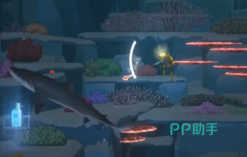 这个下潜的位置可以从灯光上判断,当大家需要开灯的时候,那就代表到位置了,之后大家需要前往深水区的珊瑚从区块中,在这里就能看到灰鲭鲨了,看到后大家可以活抓,也可以死抓。
