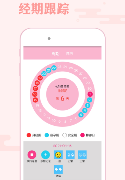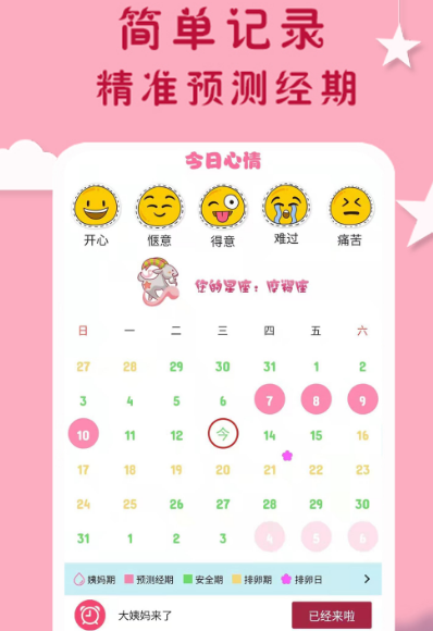 有跟踪记录功能,可预测经期的到来时间,作为专为女性所设计的经期计算器,通过科学的方式预测并跟踪月经周期,通过输入上一次月经时间以及持续时间,就能通过日历的方式,直观地了解排卵期,排卵日以及安全期。除了有记录功能之外,还可记录个人心情以及其他贴心功能,比如互动社区可以与其他女性共同探讨感兴趣的话题。