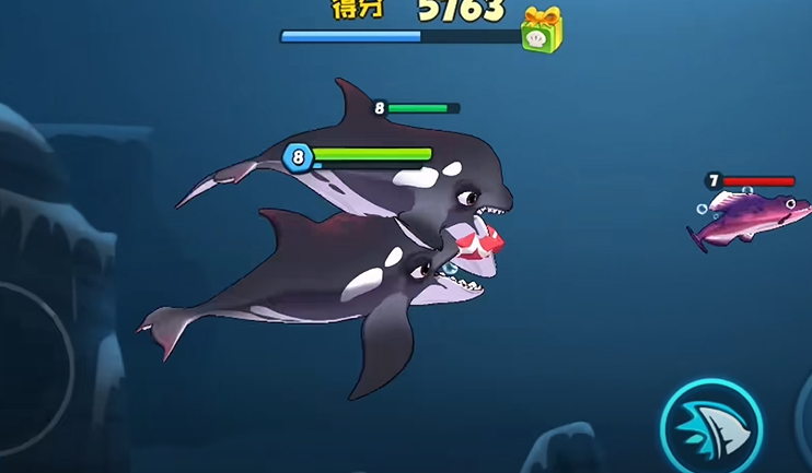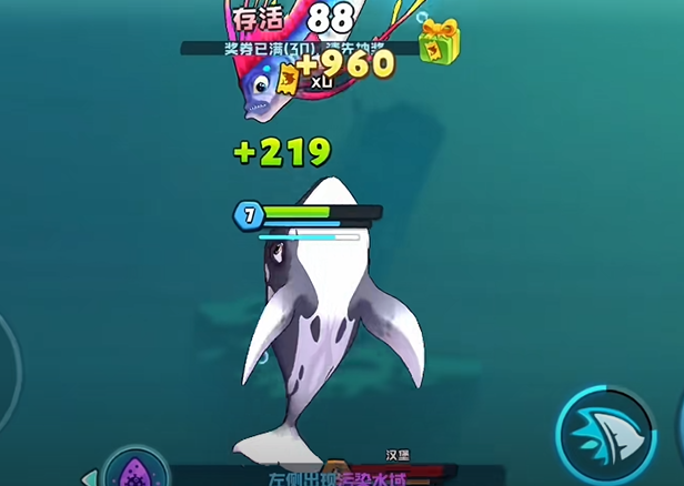 虽然初始自带一个加速效果,但是这个技能效果可以让大家在追击敌人时,通过快速靠近鱼类,不断的进行咬合的话,就可以更加快的击杀其他的鱼类,所以整体的强度还是十分的高的, 不过大家在使用虎鲸的时候,也是需要注意的!