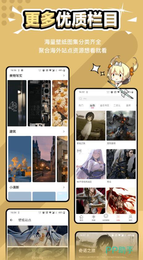 与其他同类产品相比,这个平台里面提供的壁纸资源更为高端,看起来更有艺术感,并且每天都会上新,给你提供更大的选择空间,还能自己动手DIY好看的壁纸。