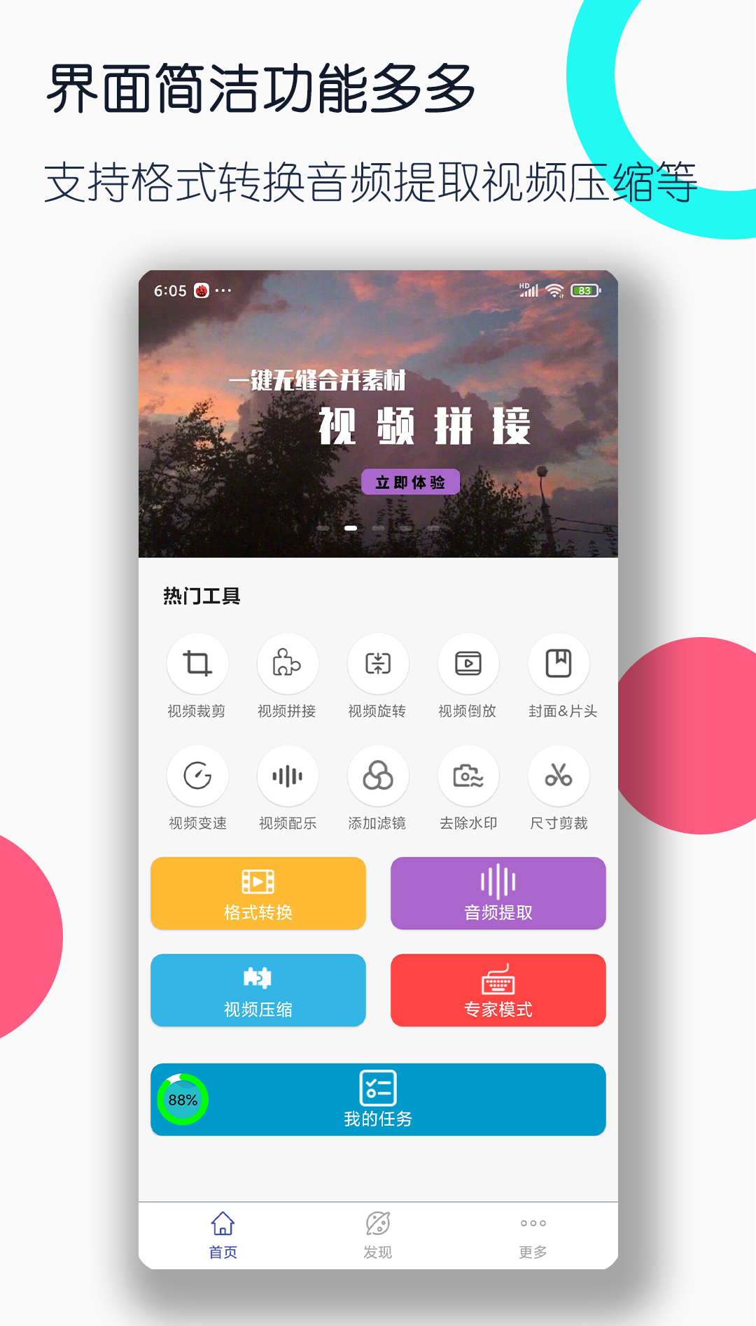 专业的视频和音频格式转换工具,还可以切换分辨率等内容,从视频当中提取音频也很方便,一键抹除视频当中那些碍眼的文字或者其他贴纸等内容。