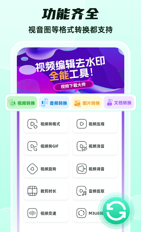 非常出色的格式转换工具,实现个性化的音频处理和视频格式转换,把你手机当中的视频文件一键转换成MP4的格式,也可以把MP4的格式转换成其他的格式分享和使用。