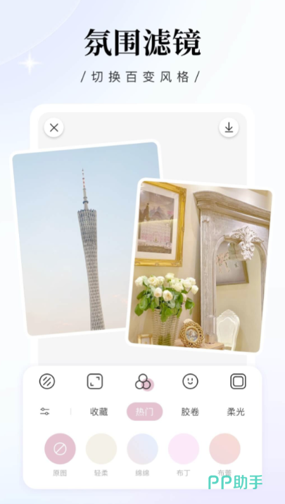 有了它还担心拍照没有滤镜吗?绝美的滤镜效果让你的图片妥妥的大片感觉,可以将多个图片拼接到一起,另外还有很多的贴纸方便大家的使用。
