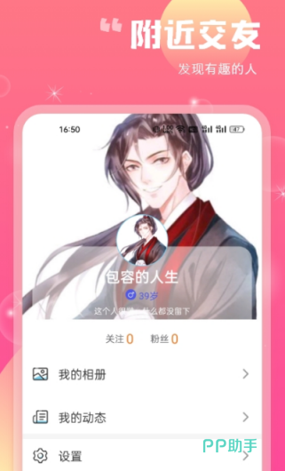 这是一款集聊天、交友、恋爱为一体的软件,通过这款软件能够快速的找到与自己趣味相投的好友,以文字或者是语音的方式进行沟通交流,在该软件上能轻松地查找附近人,让用户感受到不一样的交友方式,随时随地就能发现与自己有缘的另一半。