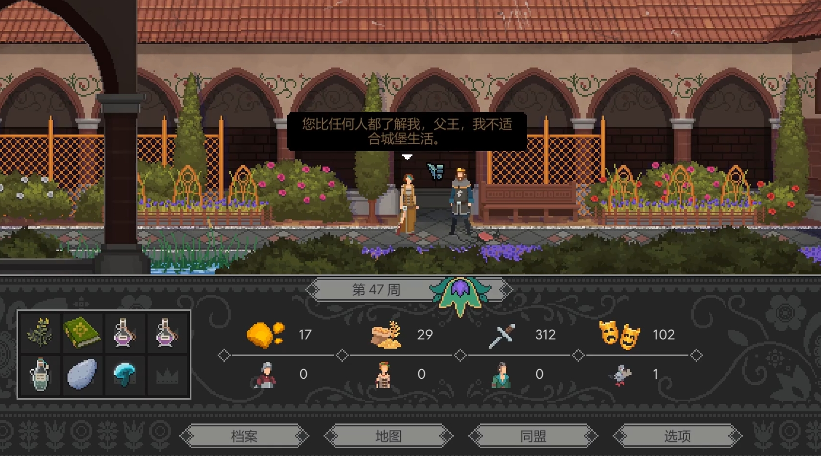 其中比较重要的就是我们二女儿的剧情,她可以在剧情当中事件选择嫁给老国王。然后换取老国王其及其麾下军队的支援,算是游戏取得外援当中的一种捷径。但这种捷径是以牺牲我们二女儿的幸福来换得的,各位可以慎重考虑。