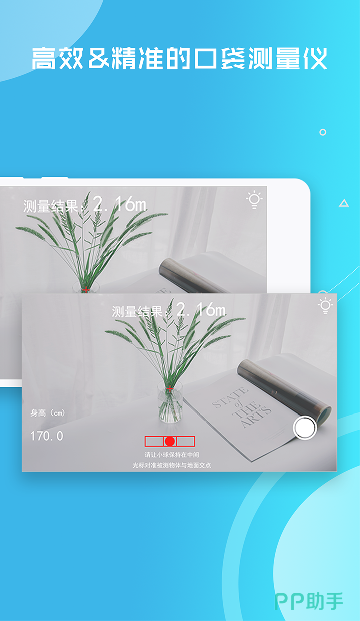 精准的测量仪器能够支持很多生活场景的使用,让你的小小手机快速变成一个精准尺子,想要测量身高的话,需要把被测者的脚到头拍照,几秒钟的时间就可以得到精准的身高测量结果了。