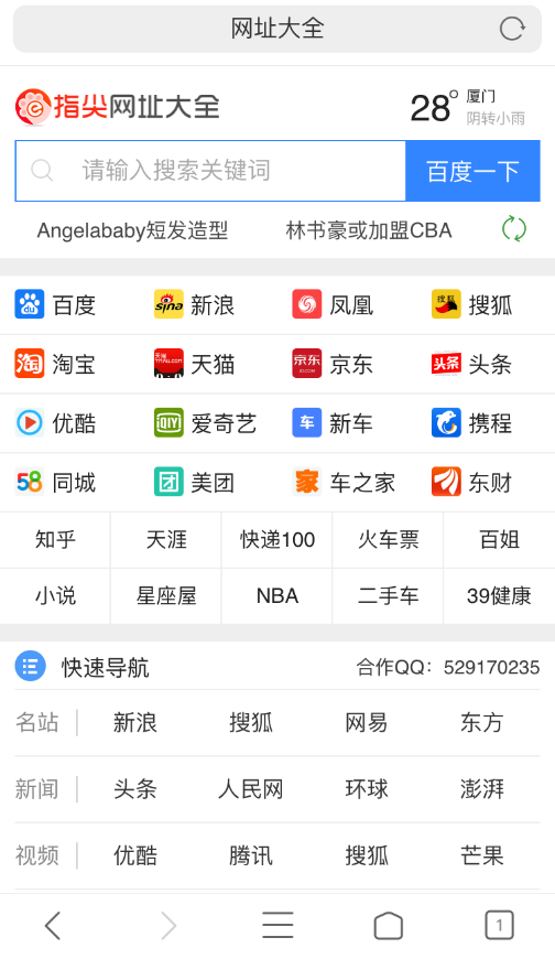 点击首页右侧【更多】可进入网址大全。可快速查看各类网址,包括新闻、视频、购物、体育、汽车等各类网站。