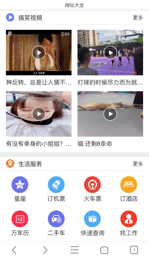 软件中还有许多各式各样的视频。进入网址大全后,往下放拉即可看到搞笑视频。