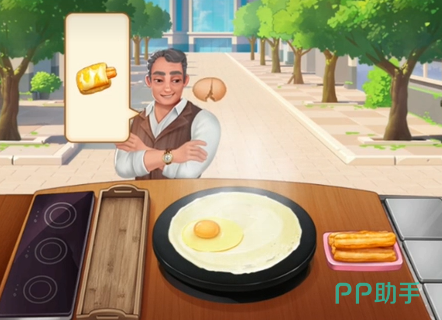 接下来早高峰开始,我们没看到一个人都需要提前将面团放在煎饼炉上摊开来煎,等到客人来到摊子上的时候差不多鸡蛋加好了,如果客人要油条就给一个油条,如果不要的话就刷好酱直接给客人。之后再接待3位客人之后本关的任务便可以圆满的完成了。之后在开启第三关之前,我们需要先升级一下,系统会要求优先升级煎饼炉子,因为可以节约2S的时间,这个对于前期的我们来说是很重要的。