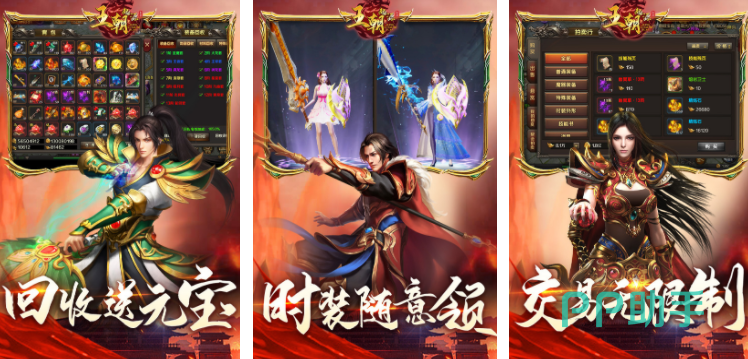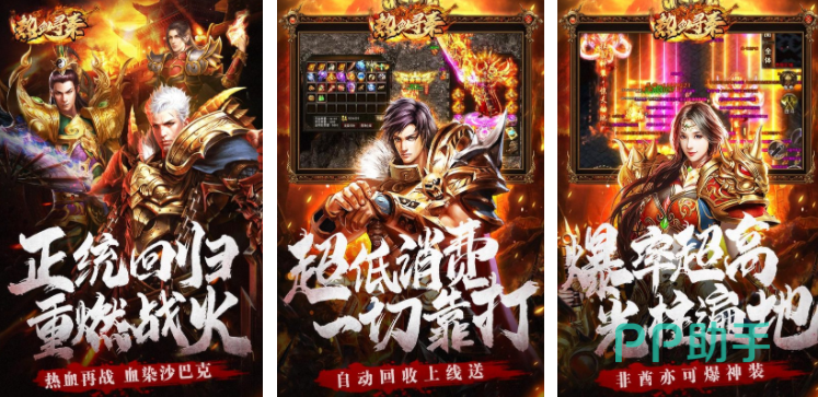 这是一个把视角放在中国古代的传奇游戏,这种设定是非常独特的,游戏中玩家可以不断的去收集装备,然后提升自身的能力,只有这样才可以在对战中充分展现自己的实力,因为在很多传奇游戏的设定中都有打宝这一玩法,所以这个游戏也融入了这种设定,并且能够让玩家感受到满屏装备的畅快体验。