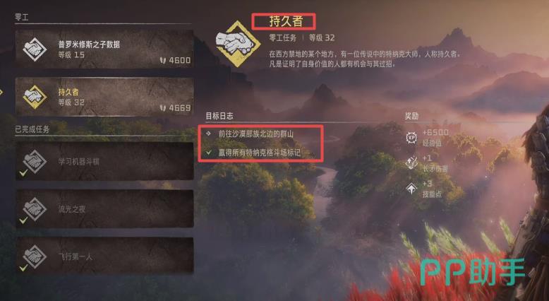 地平线西之绝境持久者位置获取的话,首先需要完成一些前置任务,前置任务已经在上面给大家分享出来了,可以先在游戏中进行这些任务的尝试,每一个基本上都是对战类型的,所以能够提升玩家的战斗能力,推荐大家来游戏中参与挑战。