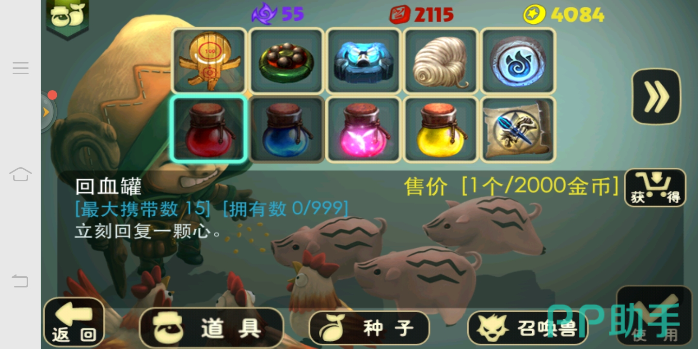 一是玩家得在众多的怪物入侵里生存下去,除了要有一些玩家操作外,还要有道具的辅助。就拿回血罐来说,使用一次就可以增加一条生命,在道具商店里就可以用2000金币来兑换一个,同时最大携带数只能是15个,加上玩家原本的生命数,也就是18条,容错率非常高。