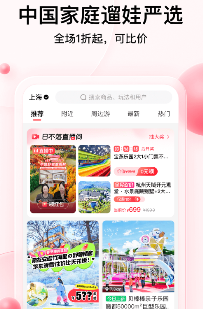 周末节假日想要遛娃,又不知道该选择,可使用这款app,超过3,000万家长都在使用,是独特的遛娃首选,在众多应用商店当中,已成为亲子游榜单的热门产品。可在其中快速找到好玩的游乐场博物馆,让宝贝更加开心增长见识。在这里订购旅游产品非常省钱,每天都有低价以及优惠券,挑选性价比较高的消费产品,周末不重要。有较多的度假产品,包含国内专业亲子酒店。