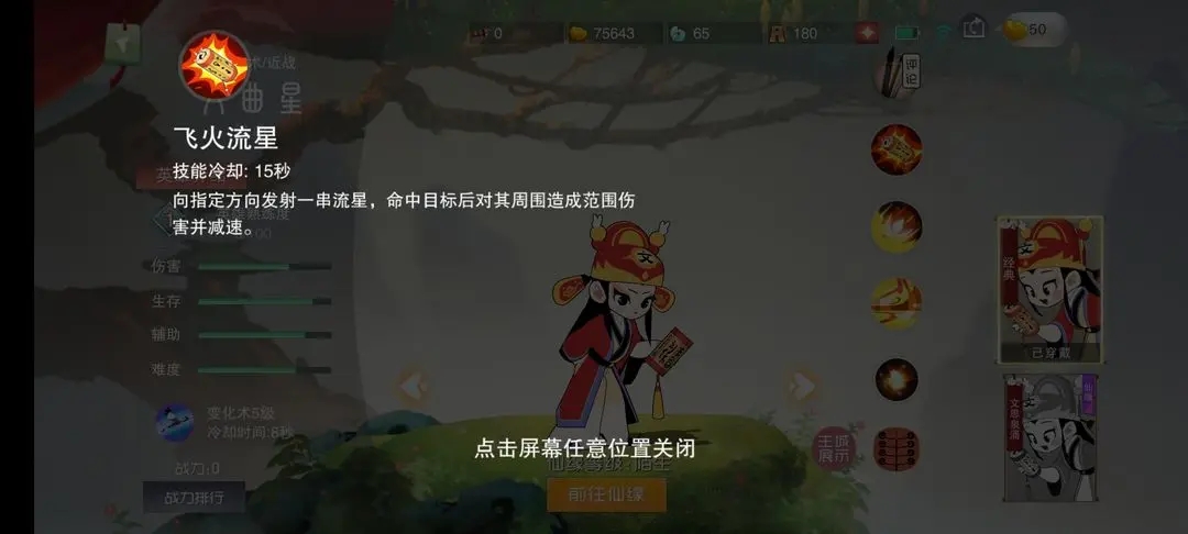 大家对这个角色的技能都是十分的感兴趣,首先是文曲星的飞火流星技能,这个技能可以让大家向自己指定的方向去发射流星,流星命中敌人之后就可以对敌人周围的其他人造成范围性的伤害,同时伴有减速效果,用来追击残血的敌人很适合。他的活力迸发技能是一个可以提高自己平时普攻攻速的技能,不管是战斗过程中还是清线都很适合。