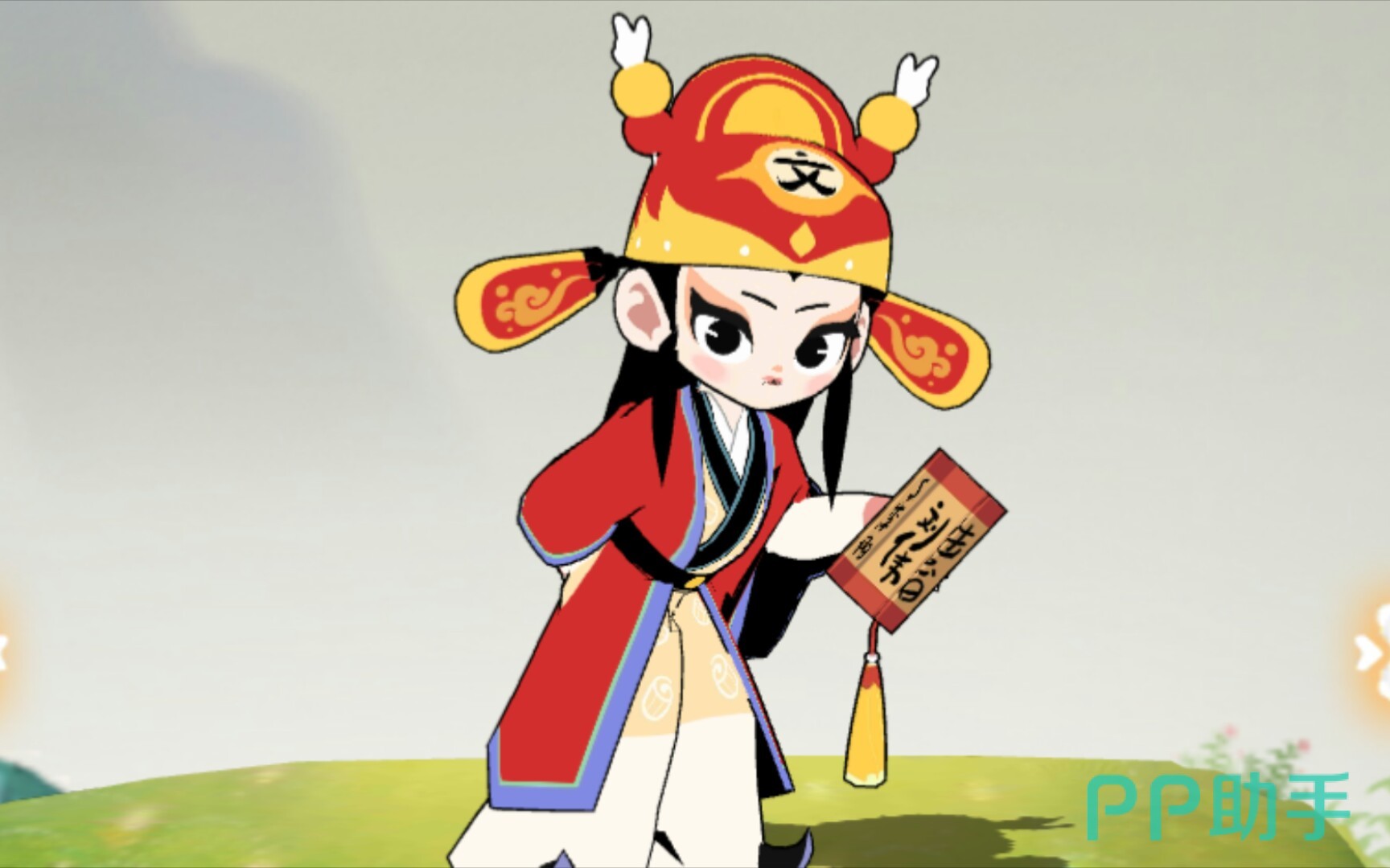 虽然整个闹闹天宫游戏的角色都偏向于q版,比较可爱,但是对比很多稍显萌态的角色来说,文曲星还是偏向于成熟一点,这里他身穿着学子的时装,看起来书生气满满,脑袋上的帽子有着一个文字,手里还拿着一卷书籍,一看就很爱读书,名副其实。