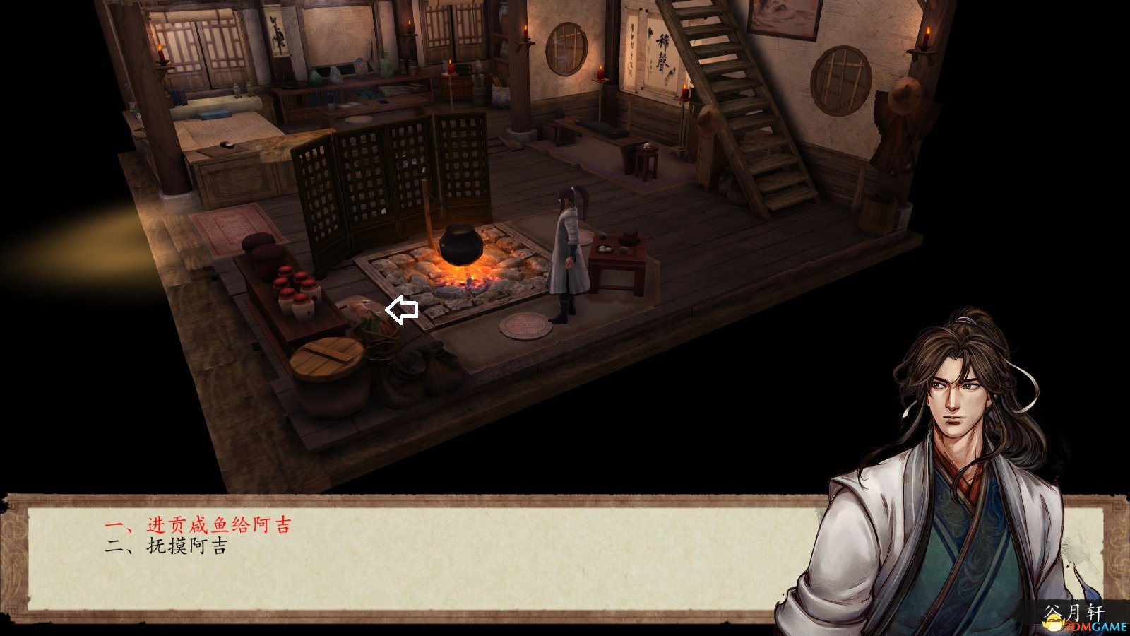 找到咸鱼后,玩家需要带着它来到无瑕子居所的屏风后面,找到正在悠闲打盹的阿吉。看到咸鱼的阿吉眼睛立刻亮了起来,它迫不及待地跑过来,用鼻子嗅了嗅咸鱼,然后一脸满足地吃了起来。看着阿吉吃得津津有味的样子,玩家的心中也充满了成就感。