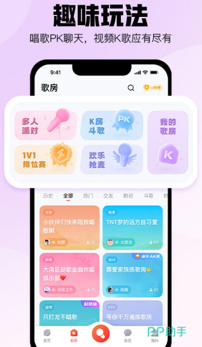 下载这款app,享受k歌沉浸式体验的同时还能遇到志同道合的好友,共同交友,牵手组cp。有抢唱接唱,在线k歌边唱边聊等多种玩法。