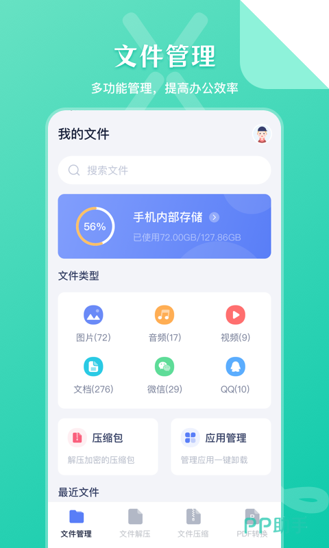 这是一个针对手机中各种图片文件和视频文档文件进行管理的工具。有了文件管理器让小伙伴们对手机的文件管理变得更加轻松高效。可以提高日常办公以及图片的查找效率。它还可以支持识别手机中多种文件格式并进行整理。