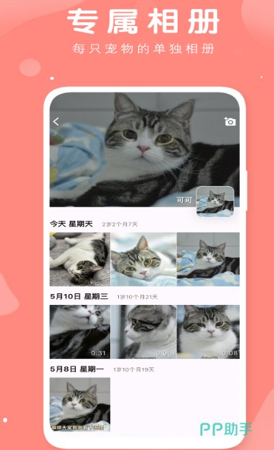 打开该软件界面清晰简洁,没有广告的推销。可以帮助用户记录宠物的成长,有各种小宠物呆萌可爱的照片,不仅有小猫和小狗,还有其它的宠物,比如兔子、乌龟、鱼类、鸟类等等。每一个小宠物都有专属的档案记录,也会时时分享这些小宠物日常生活中有趣的照片。