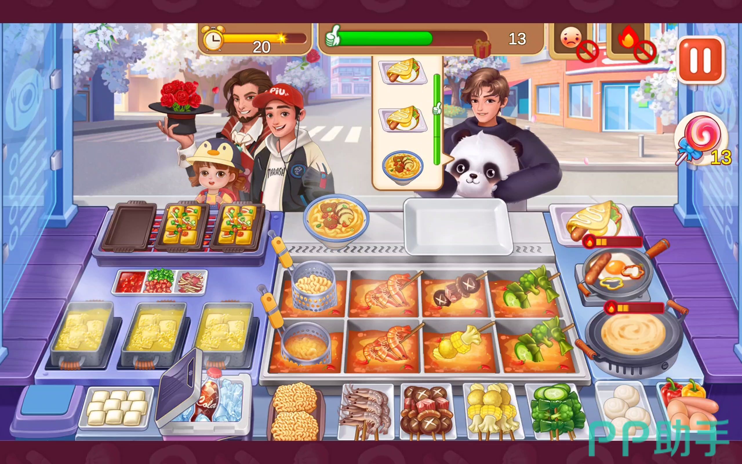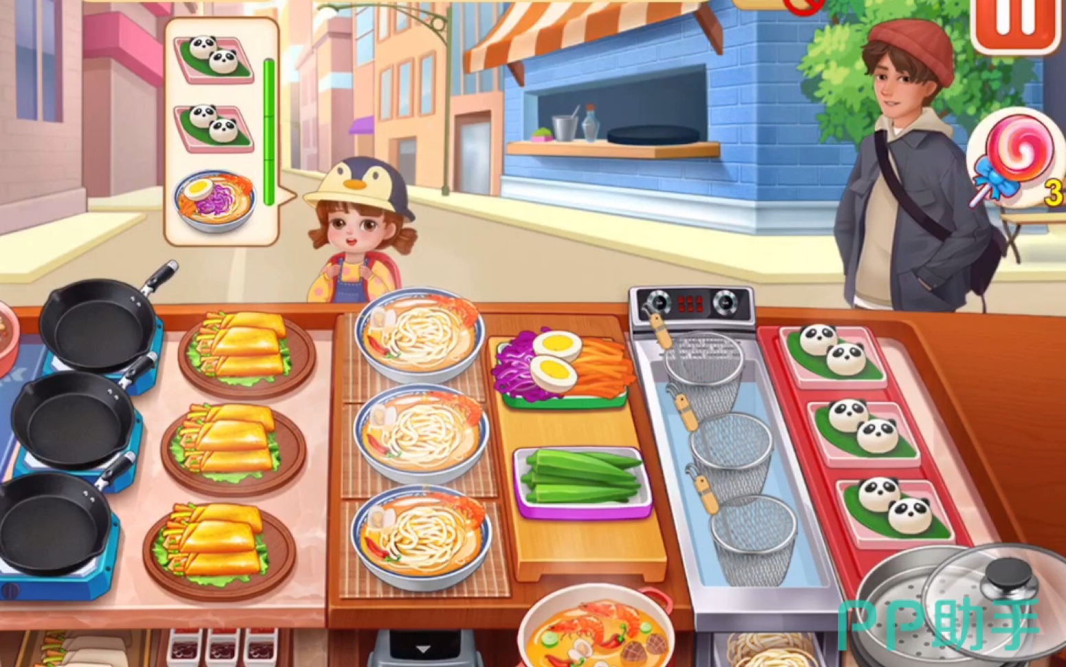 虽然是一款模拟经营类的游戏,但与其他同类型的游戏相比,这款游戏玩起来还是比较紧张刺激的,不但非常考验小伙伴们的观察能力,也比较考验手速。在开店时,会不断的有客人光顾他们想要吃的食物,不同制作流程也有一定的区别,因此小伙伴们要做的就是根据客人具体所点的餐点来制作食物,如果做错了的话,可是没有客人会接受的哦。