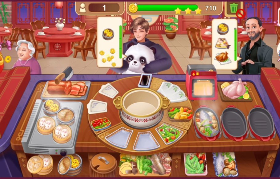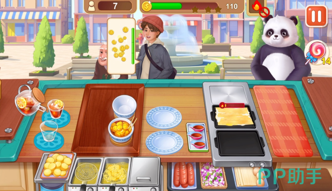 这款游戏最有趣的地方就是每一位客人都是有固定的等待市场的,一旦超过了这个时间,客人们就会失去耐心并离开,不但损失了客户,这一关的评级也会因此而降低,因此小伙伴们在每一关中都需要集中注意力,仔细观察客人们需要点的物品,尽量不要制作出错误的菜品,浪费时间。
