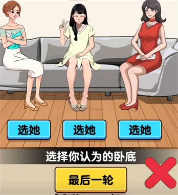 三轮问题结束后,你需要在三个人物中选择一个,作为你认为的卧底。如果你选择正确,就可以通关成功;如果你选择错误,就会通关失败。