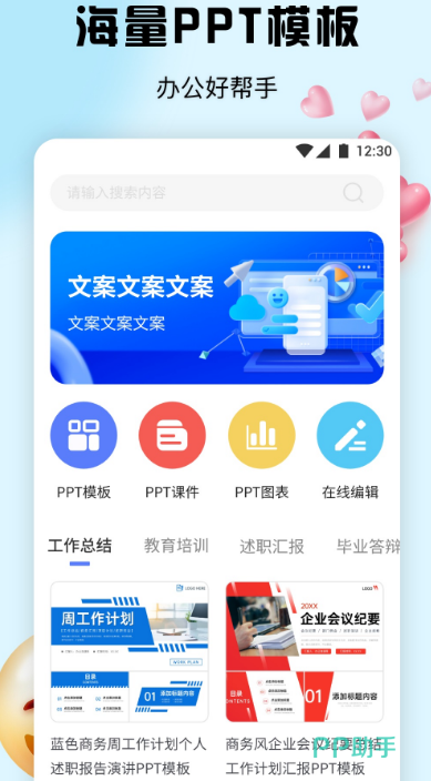 不管是想要在手机上制作ppt还是制作Excel、word,该软件都具有海量的模板,是办公的好帮手,可提高在线制作ppt的效率,还具有ppt播放的功能。
