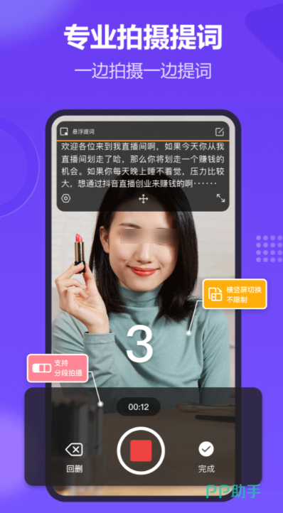 使用这款软件能够帮助我们轻松实现边直播边查看台词,而且还支持了内置的拍摄模式。值得一提的是,软件还支持多个台本的切换,可以不用切回主界面,直接在悬浮框中选择准备好的台词本。