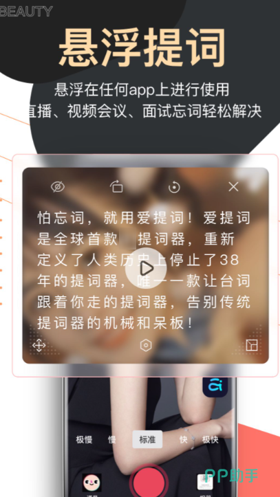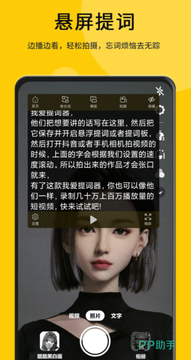 带有便捷的台词悬浮框创建模式,在显示的过程中可以直接进行摄像头录制或者是手机录屏,在录屏的过程中也可以隐藏掉悬浮框哦,所以功能还是比较完善的。