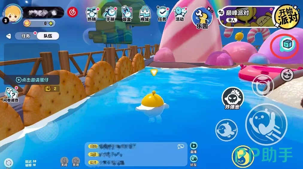 进入蛋仔派对以后,页面不是那种很凌乱找不到项目入口的,而是非常简洁易懂的,右上角有很多不同的游戏模式选择,例如:躲猫猫、巅峰模式,休闲模式等等,各种各样都非常有趣。而游戏开始键旁边的这么几个小入口才是领取蛋仔派对对唱动作的关键,这里分别有商城、手册、活动,任务等入口。