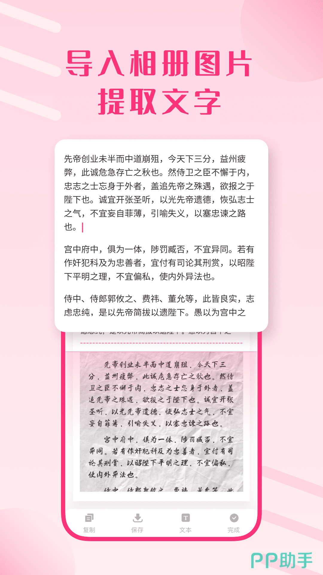 一键就能快速的导入图片来进行识别,大家也能去通过它提取对应的文字,这点做的还是非常不错的,帮助用户去了解本地文档中的各类不同字体,包括排版以及整理等功能也会给到大家。