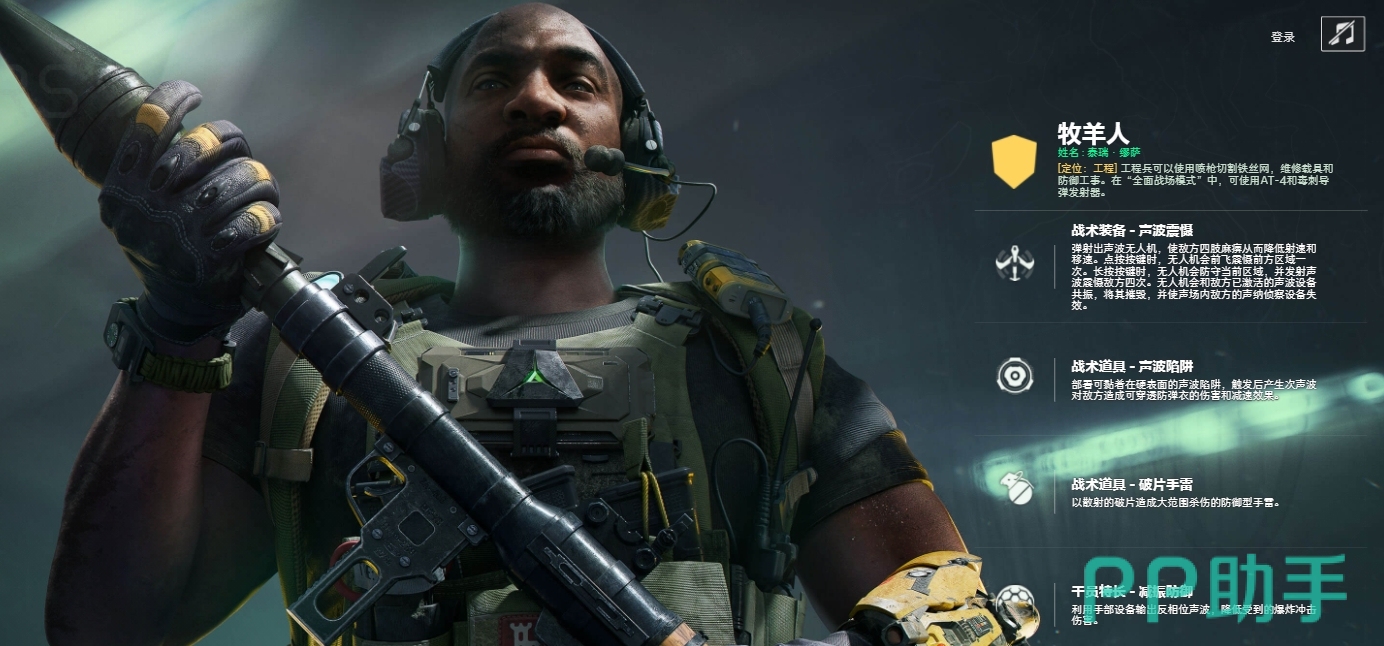 牧羊人是一名工程兵角色,他的整体生存能力十分出色,特别是具有天生的爆炸物抗性,这让他能够显著减少爆炸伤害的承受,他的技能包括发射一架无人机来辅助战斗,这架无人机具有强大的战术价值,因为它能够直接破坏敌人的声呐系统,而且他的无人机不仅增强了队伍的情报和监视能力,还为团队提供了一种直接的战术优势,使得对手的隐蔽行动变得更加困难。考虑到他的高生存能力和独特的技能组合,牧羊人是一个值得玩家考虑选择的角色,特别是在需要强化队伍防御和情报战能力时。