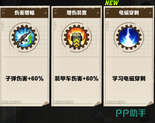 在加上,在对战环节中,大家可以选择其中一个角色来进行操作,而技能的选择上,大家可以选择一个【伤害增幅】技能,这个技能主要是强化子弹打出的伤害,这样可以快速的提升自身的攻击效果!当然了,【子弹伤害】这个技能的话,是有多个技能升级效果的,大家可以选择【电磁穿刺】,这个技能的话,需要大家进阶的强度等级高一些,伤害才会显现出来,前期的话,最好是都选择一个基础的技能在进行强化!同时还有一个技能是【温压冲击】,这个是可以在射出子弹的时候,额外释放出一个带有爆炸效果的子弹,伤害非常的可观!