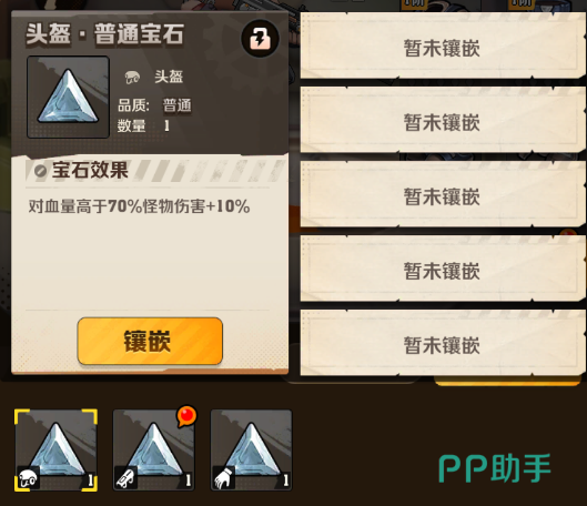 最后一个就是宝石的选择了,大家在镶嵌宝石的时候,最好是优先选择头盔类的宝石,头盔类的宝石可以增加自身的血量,而且当在对战过程中,大家遇到一些血量高于自身的僵尸时,那么对这个僵尸造成的伤害会额外附加10%,还是非常的可观的!
