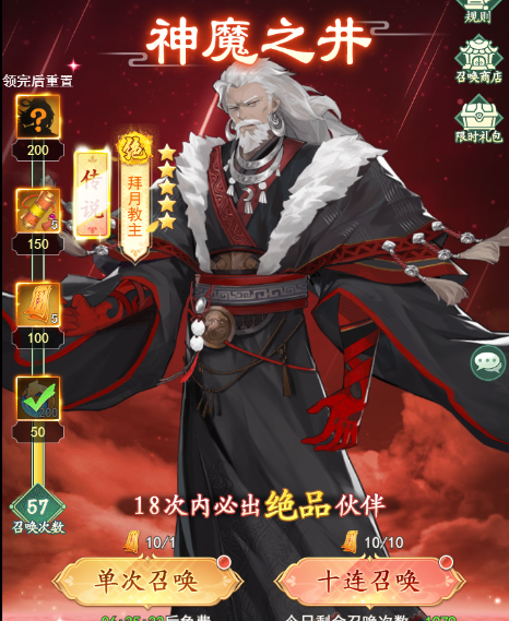 第二个则是【神魔之井】,这个就是大家需要使用通灵卷来进行抽取的卡池了,目前游戏中没有更新其他的卡池,小编是推荐大家抽取两到三个金色的角色之后,就可以把抽奖券进行一个囤积,这样后续出现新卡池的时候,大家也有材料去进行抽取!