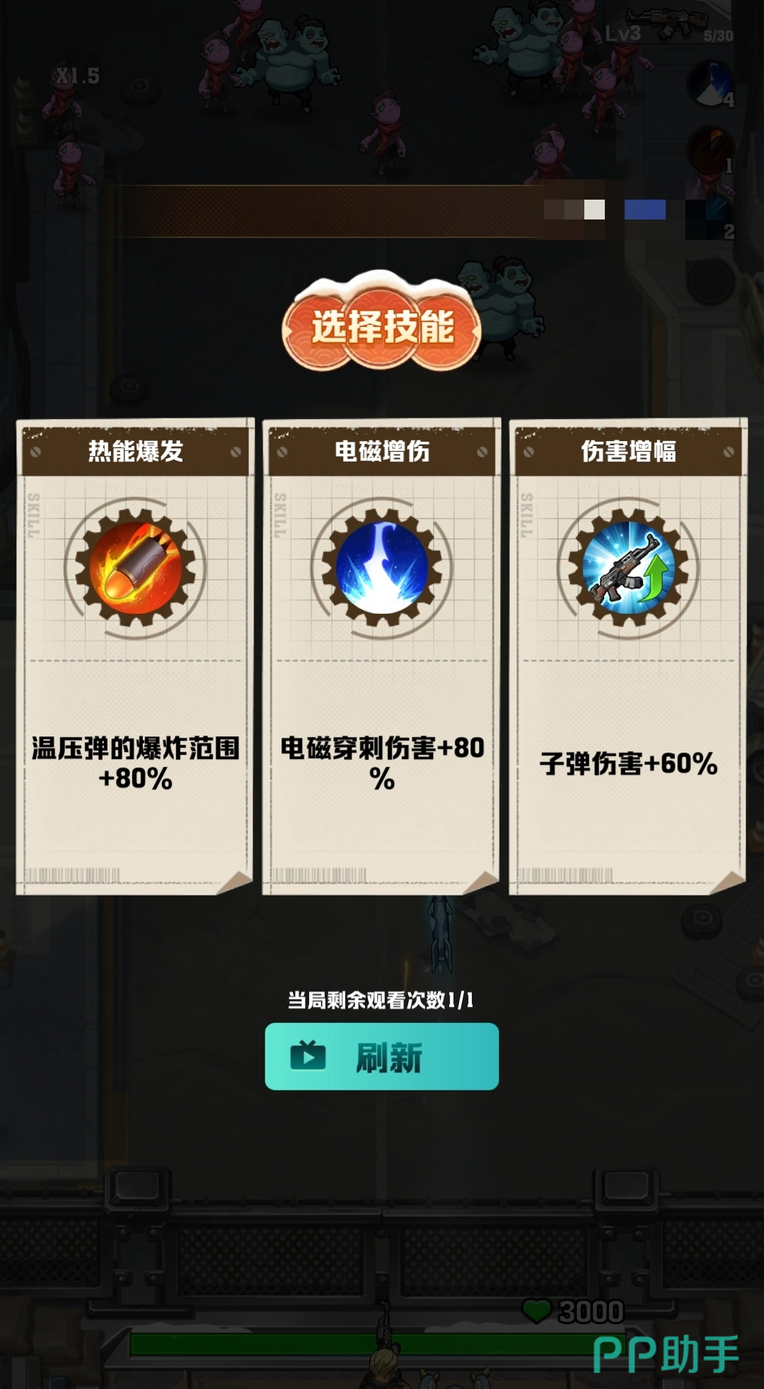 这个技能组合可以让你的子弹具有冰冻的效果,让僵尸在受到攻击的同时,还会被冻住,无法移动和反击。这样,你就可以轻松地清理掉一大片的僵尸,还可以节省你的弹药和能量。