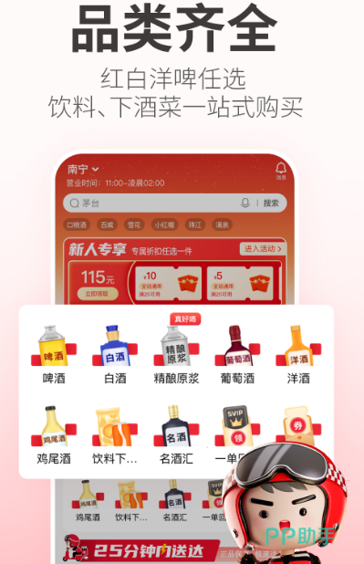 这是人们纷纷推荐的酒水外卖平台,经营的类型包含很多,比如洋酒、白酒、葡萄酒、啤酒等等,通过app,微信商城以及小程序等多种第三方应用平台下单,大概15分钟就能够快速送到手,当前服务范围比较广比如重庆、湖北、四川等几十个不同的城市,目前其他城市依旧在开发当中。