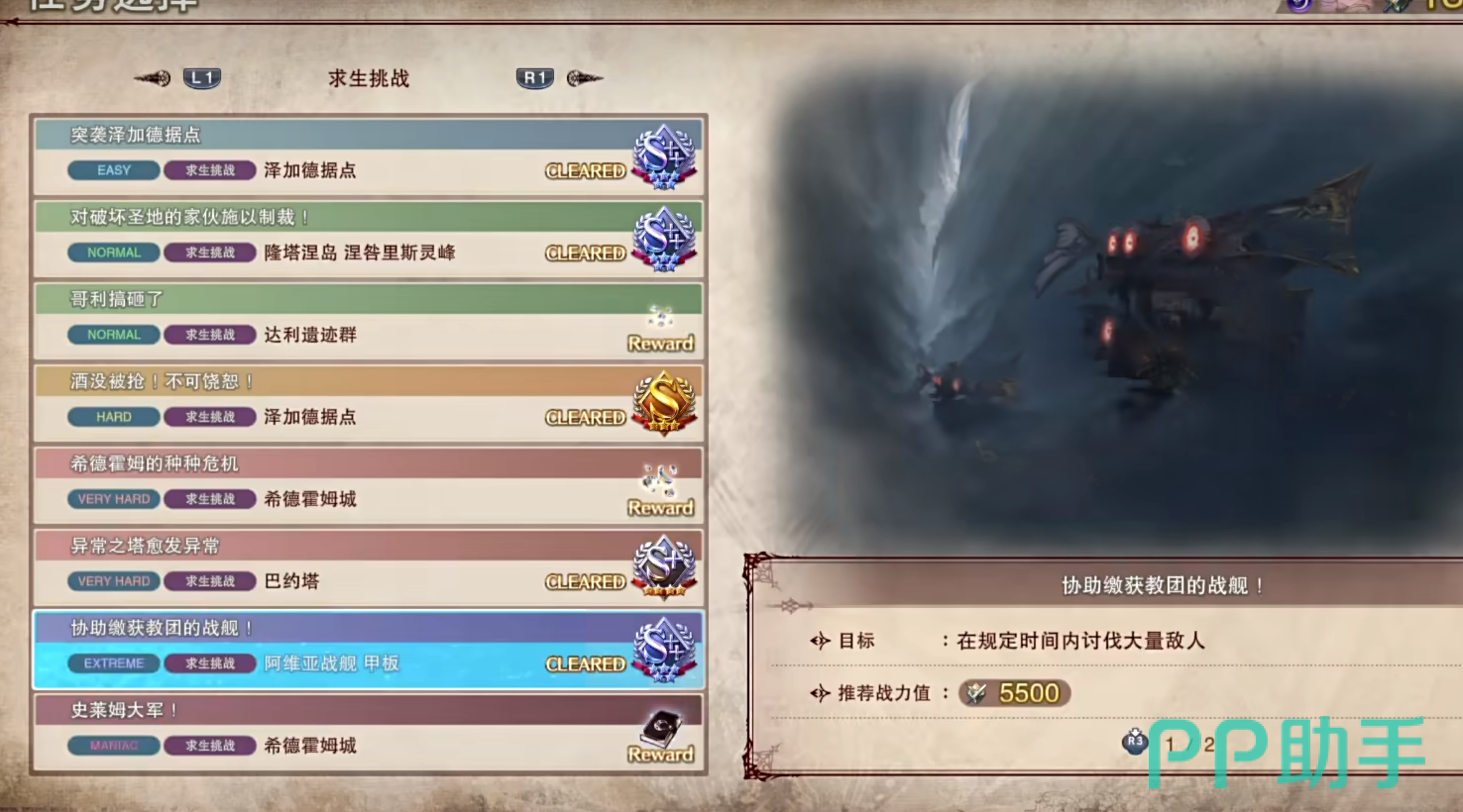 在这里需要注意的是挂机玩法,不是传统意义上的玩法,是通过ai控制玩家的角色进行战斗让玩家在战斗的时候解放双手。这里推荐玩家进行刷经验的挑战关卡是求生模式中的【协助缴获教团的战舰】。