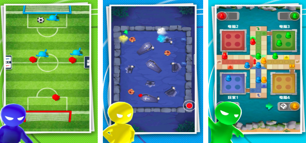 多人竞技场不仅仅可以实现两人在线,他最高承载力可达到四人同时在线,游戏当中集合了很多有趣的玩法,两个人一部手机即可高能解锁。不仅如此,独自一人的时候也可以和游戏当中的AI机器人进行对战,让你的快乐依旧在延续。目前他的所有小游戏都是可以通过直接来进行简单化操作和对战的,在关卡内容的设定上也十分丰富,是一款热场必备小游戏。当前玩家们可以体验的游戏作品有飞行棋、足球、射击对决,让你足不出户就可以在线完成各种有趣的运动,感兴趣的小伙伴们可以赶紧下载试一试哦。