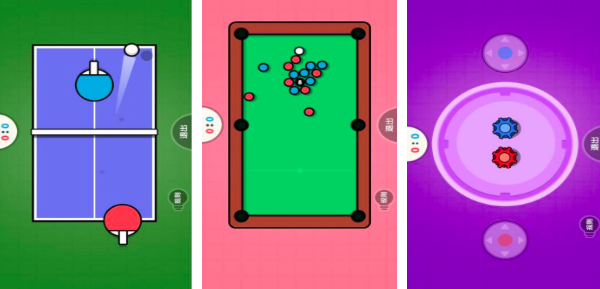 这款双人联机能够让小伙伴们带上自己最好的好友一起玩耍,而且他还实现了同频在线互动模式,只要在一个设备上就可以满足两个人的PK要求,不仅可以帮助小伙伴们在线调节气氛,而且还能够大大提升玩家们的默契度。这款游戏当中可以玩的活动还是挺多的,如果二人乒乓球,二人台球以及齿轮PK比赛都是可以满足玩家日常的活动需要,游戏的整体画面设计也十分简约。Q萌可爱的画风配合着搞笑的背景音乐,让玩家在游戏的同时也能获得一不小的乐趣。快拉上你的好友一起体验体验吧。