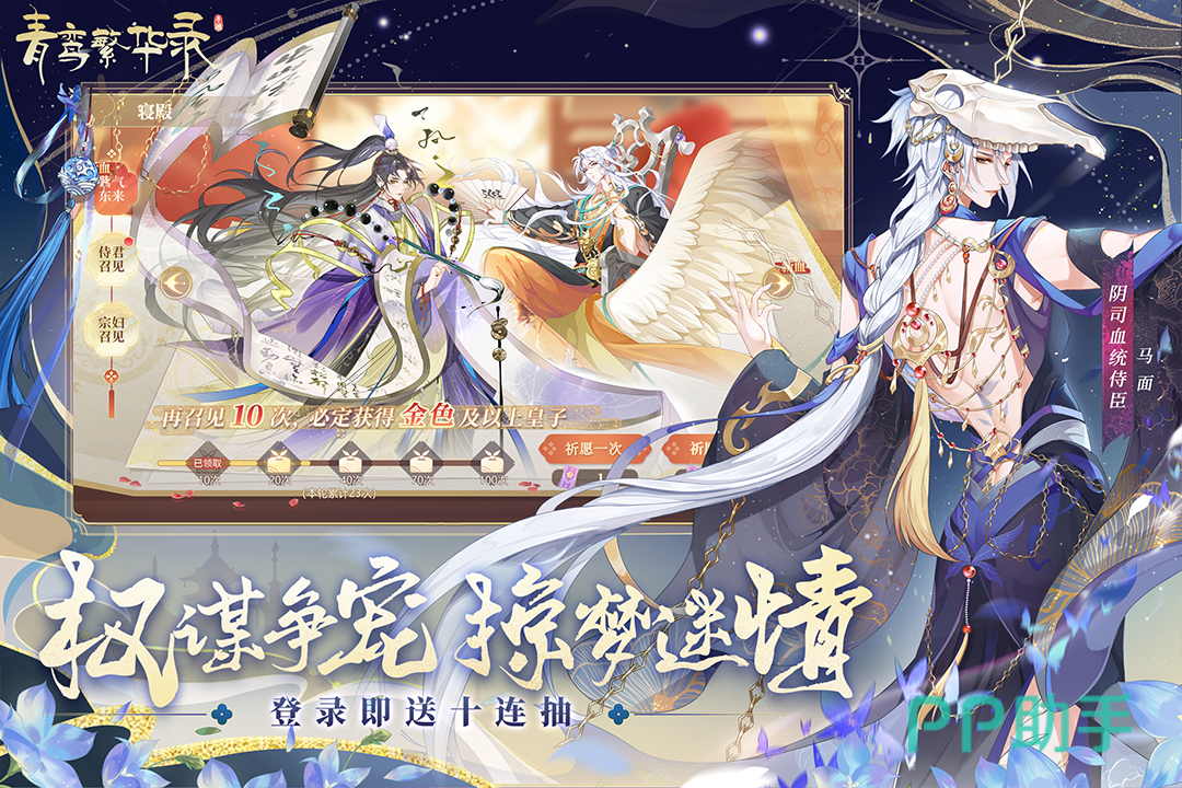 《青鸾繁华录》中你扮演的角色是一名开国女帝,国家积极可危,各国虎视眈眈,为了挽救这个危机的局面,你开始周旋于各个国家,也正是如此,你邂逅了不同性格和身份的男主,你既可以从一而中选择一位男主结婚,也可以端水与他们共同谈恋爱。游戏画风唯美,除了恋爱以外,还有权谋和争宠的玩法!
