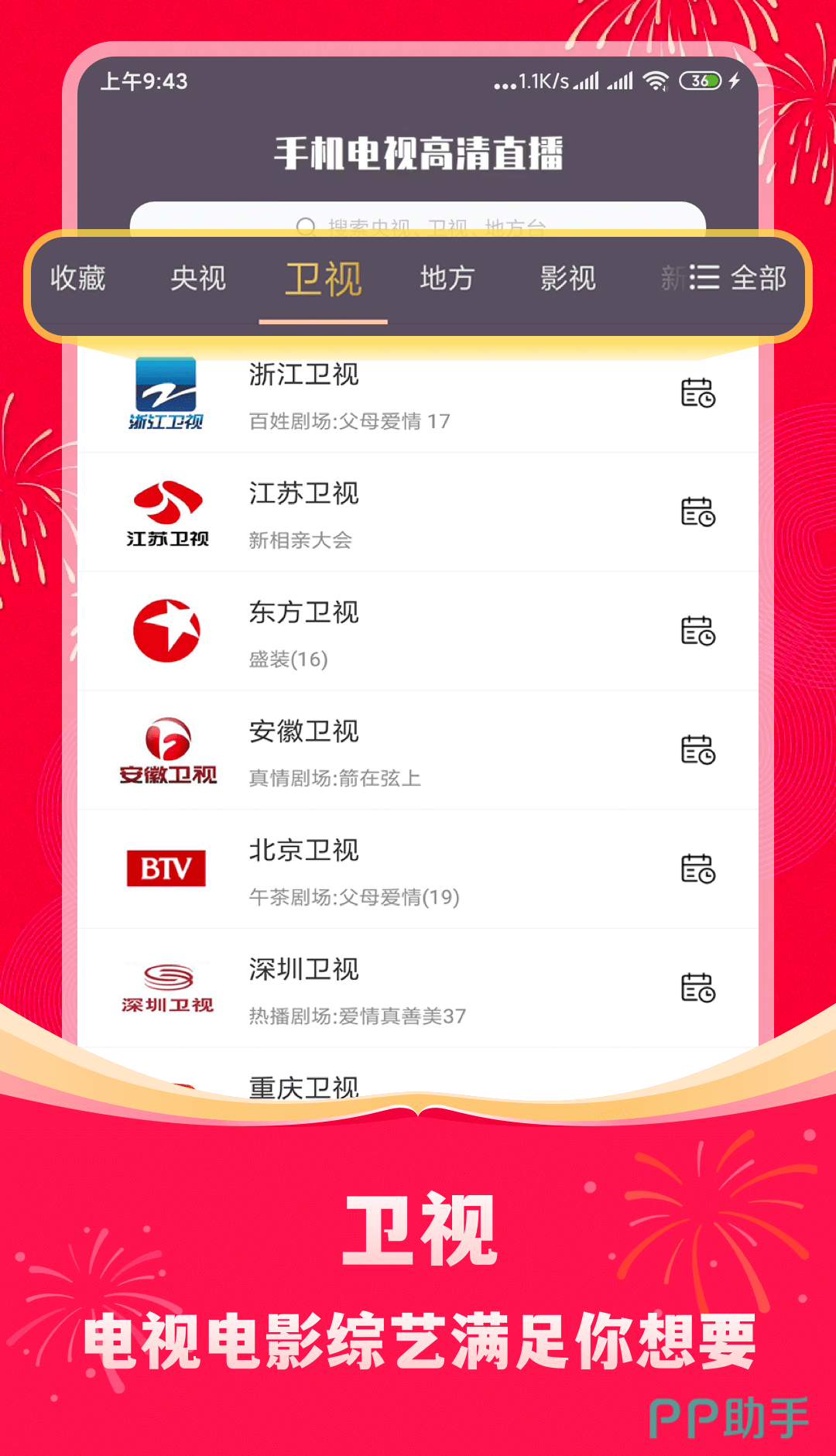 能够准时提醒大家来看电视资源内容,几千个电视频道随意选择观看,卫视和央视频道都有,各种热剧老剧和综艺动画等内容让你一次看个够,精彩节目也能提前预约。